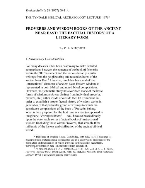 He is familiar with the scholarly discussions. Des milliers de produits. Kitchen states that the book of Proverbs in its present form is broken into three distinct divisions.